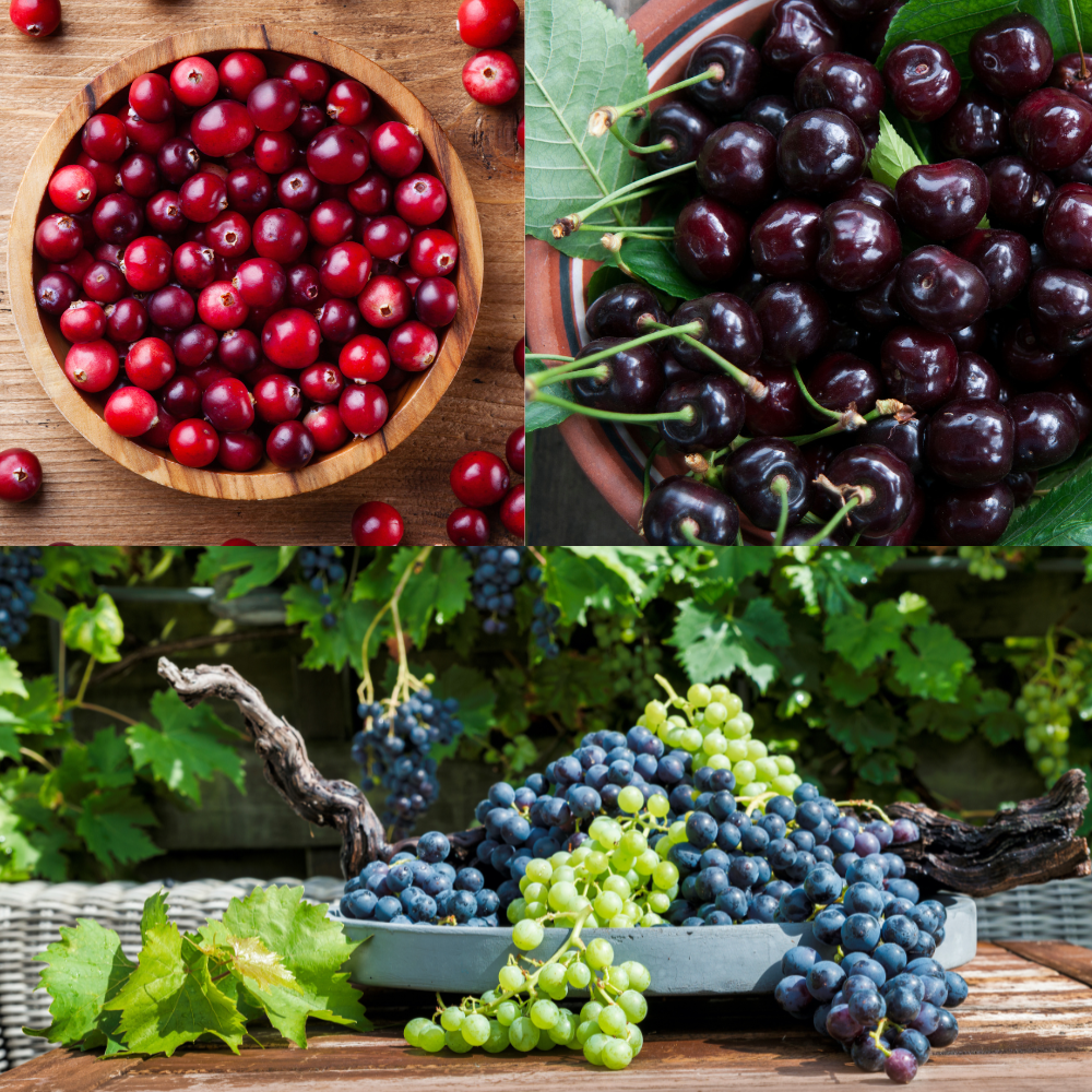 - Our healthy blend of cranberry juice, black cherry juice, white grape juice, and concord grape juice, offers a delightful balance of flavor and health benefits. These fruits are packed with antioxidants, phytonutrients, trace minerals, and amino acids, which help protect your body from harmful free radicals and support cellular health.